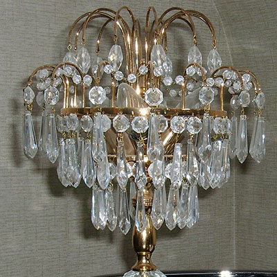 Kronleuchter, Tisch- und Wandleuchter mit echtem handgeschliffenem Bergkristall
